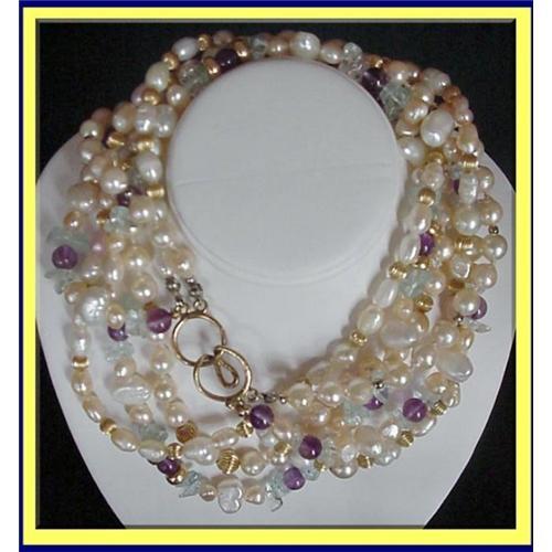 <tr><td>Title:VINTAGE TRIPLE NECKLACE PEARL GOLD AMETHYST</td></tr>