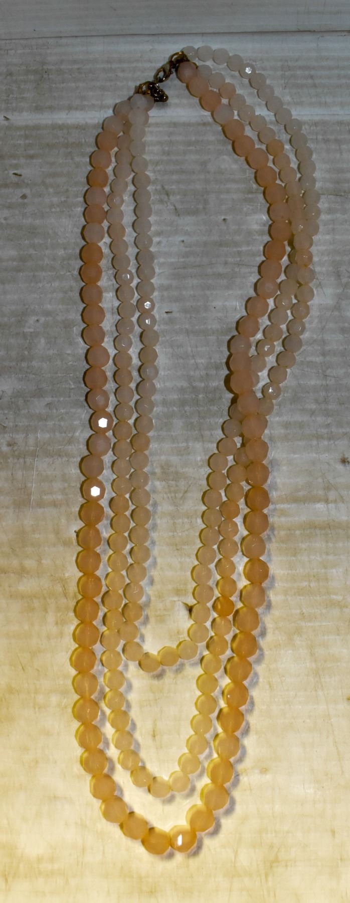 VINTAGE TRIPLE STRAND BEADED CORAL COLOR NECKLACE