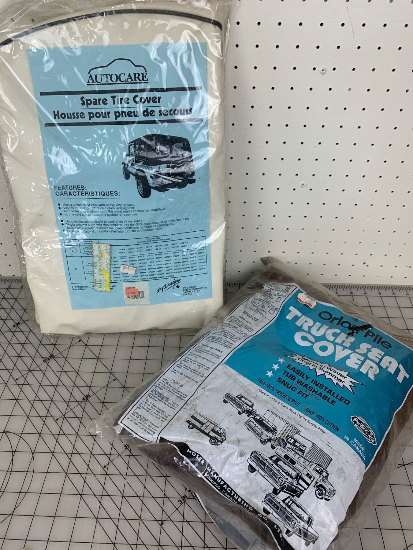 VINTAGE TRUCK SEAT COVER AND SPARE TIRE COVER NEVER USED