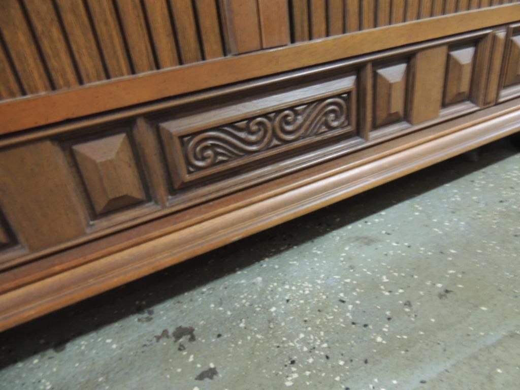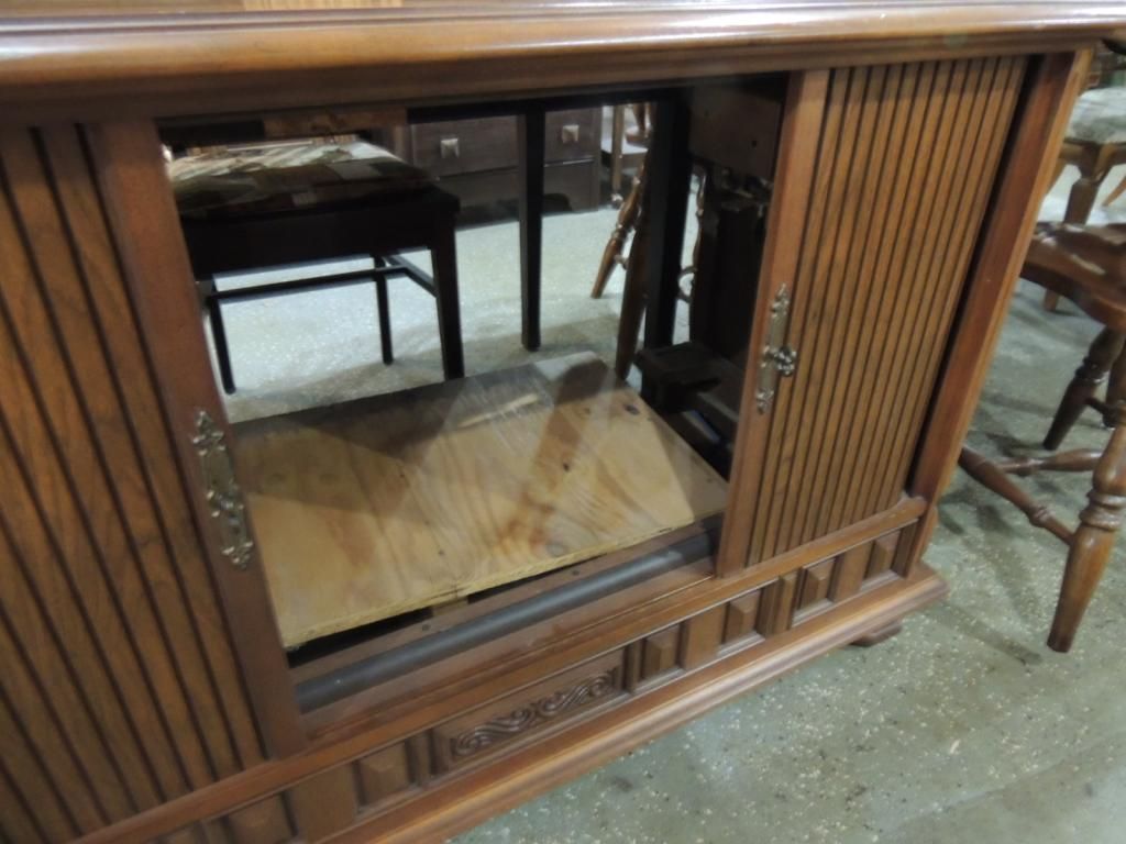 VINTAGE TV CABINET WITH ROLL DOORS. TV HAS BEEN REMOVED VINTAGE PIECE. AS SHOWN. SEE PHOTO FOR MORE DETAILS.