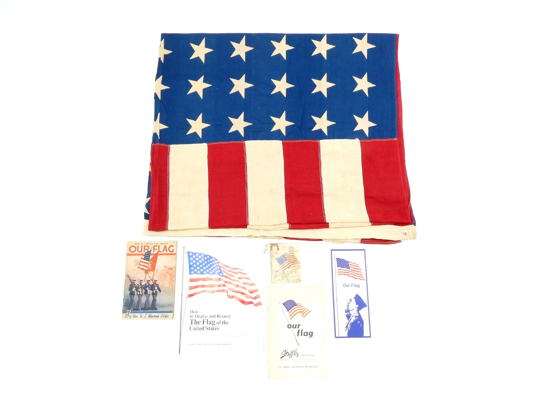 VINTAGE U.S. 48-STAR FLAG AND PAPERWORK LOT