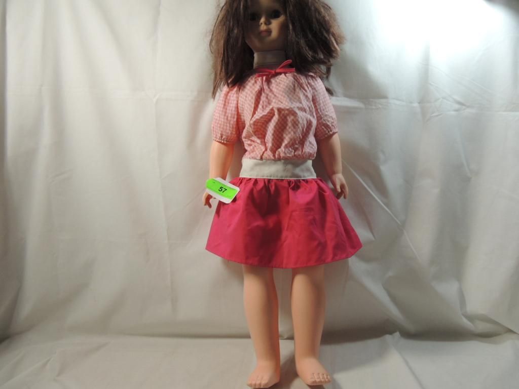 UNEEDA 30" TALL PLASTIC DOLL IN PINK DRESS AS SHOWN. SEE PHOTO FOR MORE DETAILS.
