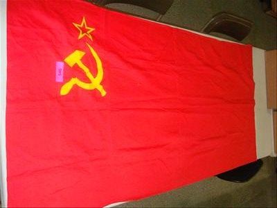 USSR COMMUNIST RUSSIA FLAG. FLAG HAS IMAGE OF HAMMER AND SICKLE, AND RED STAR WITH YELLOW OUTLINE. MEASURES APPROX. 3 X 5. AS SHOWN. VIEW PICTURE FOR DETAIL.