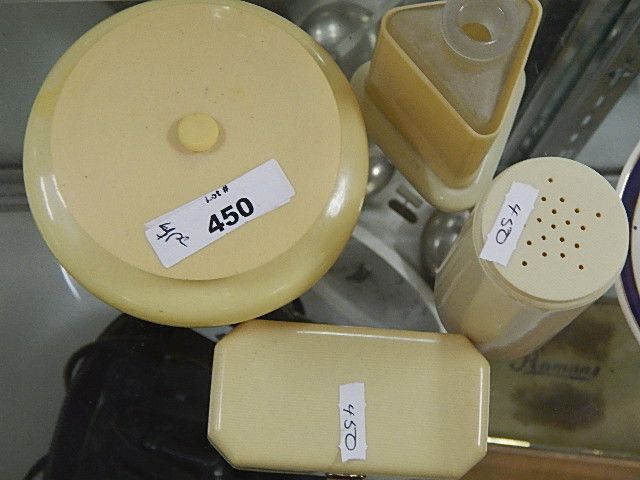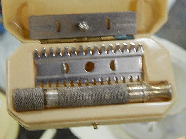 VINTAGE VANITY SET - VINTAGE RAZOR IN 1 CASE + 3 OTHER CONTAINERS = 5 PC TOTAL