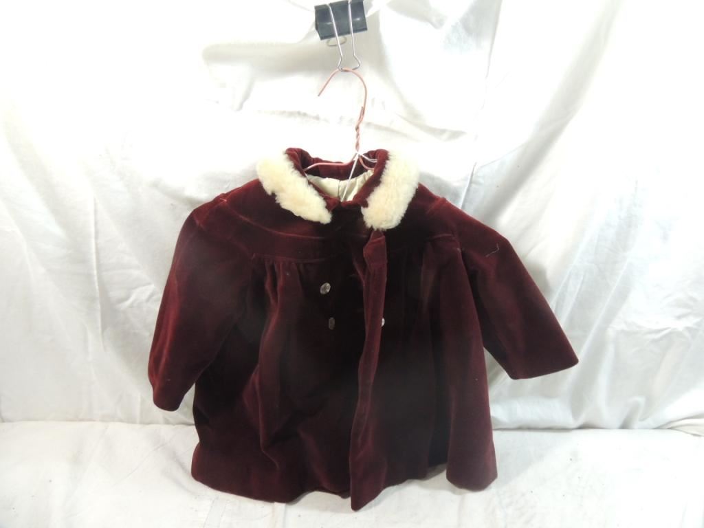 VELVET VINTAGE DRESS CHILDRENS COAT, COLLECTIBLE, VINTAGE CLOTHES, BEAUTIFUL COAT, AS SHOWN SEE PHOTO FOR MORE DETAILS.