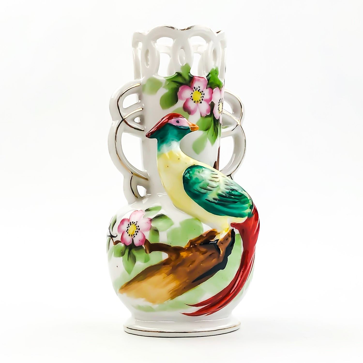 #9018 - SMALL PORCELAIN VERTEX BUD VASE. MEASURES: 6” (15 CM) TALL BY 3” (8 CM) WIDEST DIAMETER AND 1.5” (4 CM) OPENING DIAMETER***ITEM(S) LOCATED IN LETHBRIDGE ALBERTA. FREE TRANSPORT TO EDMONTON OFFICE AVAILABLE FOR THIS AUCTION. WORLDWIDE SHIPPING IS AVAILABLE FOR ALL ITEMS