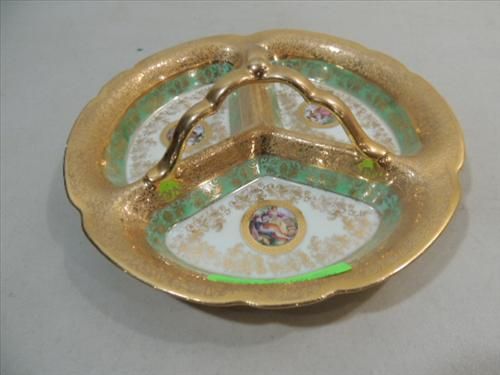 VINTAGE VICTORIA 24 KT GOLD CHINA DIVIDED DISH. MADE IN CZECH. FINE DETAIL. AS SHOWN. VIEW PICTURE FOR DETAIL.