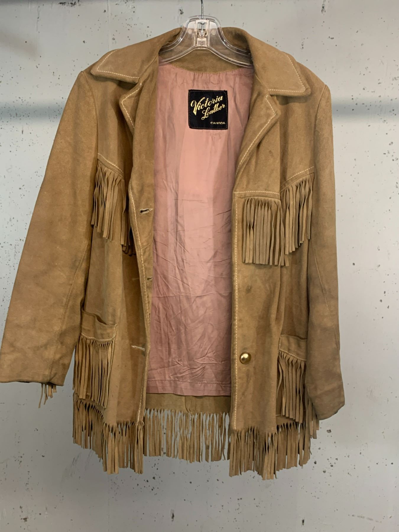VINTAGE VICTORIA LEATHER FRINGE JACKET MENS M?