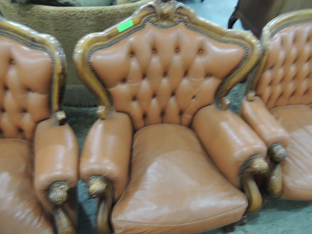 TUFFED BACK. LEATHER VICTORIAN STYLE. GREAT CONDITION. AS SHOWN. SEE PHOTO FOR MORE DETAILS.