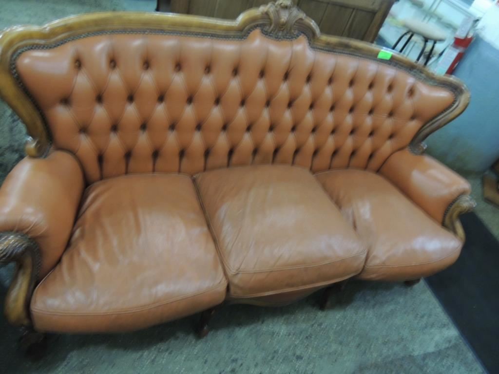 TUFFED BACK. LEATHER VICTORIAN STYLE. GREAT CONDITION. AS SHOWN. SEE PHOTO FOR MORE DETAILS.