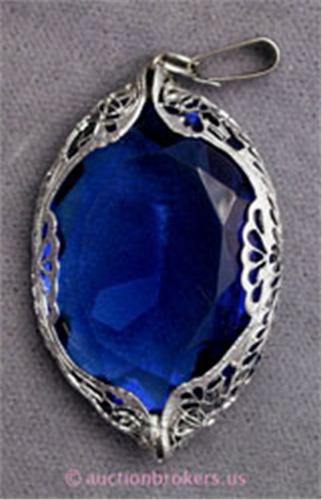 VINTAGE VICTORIAN STYLE PIN/PENDANT SET WITH BLUE GLASS STONE CIRCA 1930.