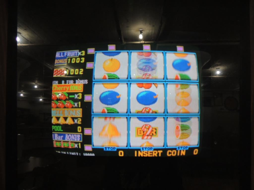 VINTAGE VIDEO GAMING, UPRIGHT CABINET MACHINE, GAMING, GAMBLING, ELECTRIC, VIDEO AMUSEMENT, FRUIT BONUS SLOT MACHINE, MAN CAVE, BAR, VEGAS STYLE GAMES, AS SHOWN SEE PHOTO FOR MORE DETAILS.