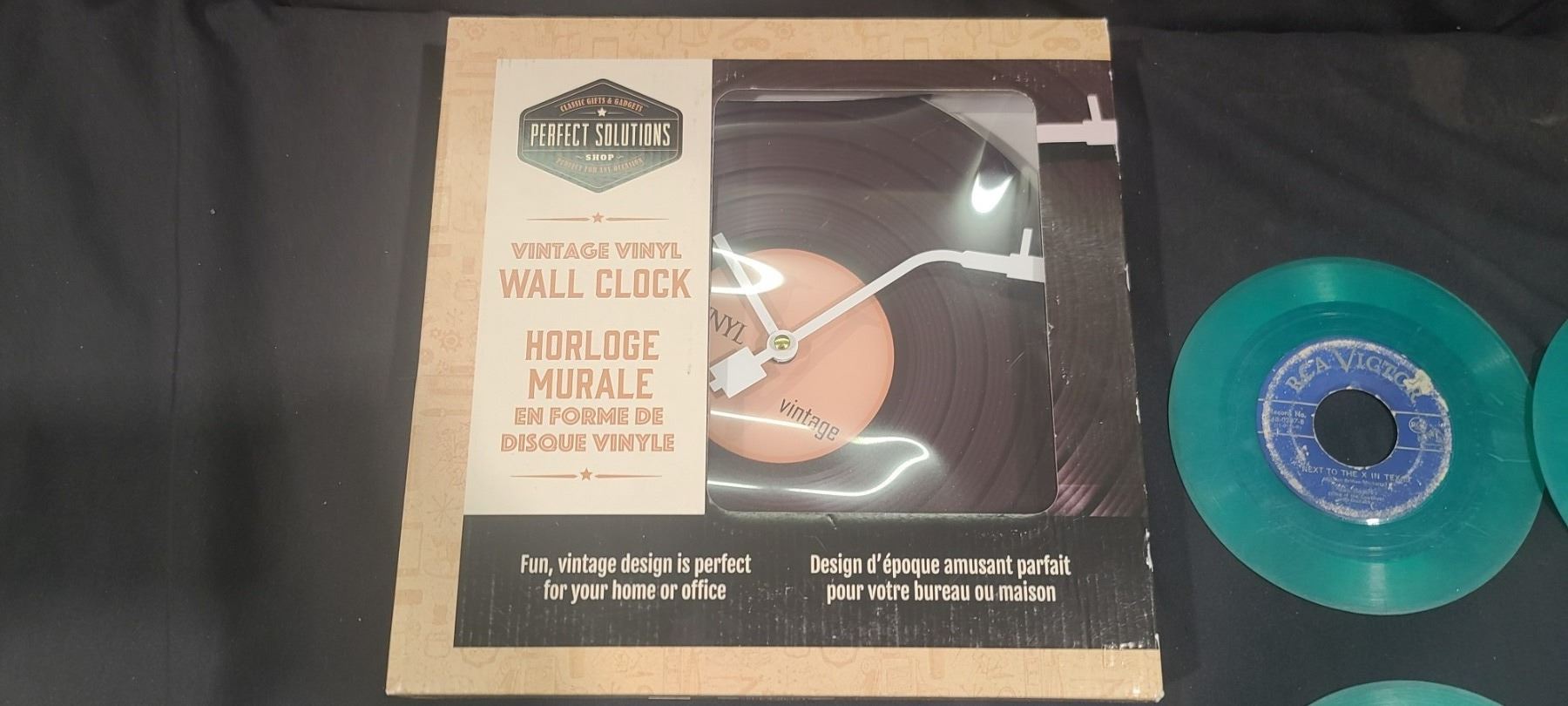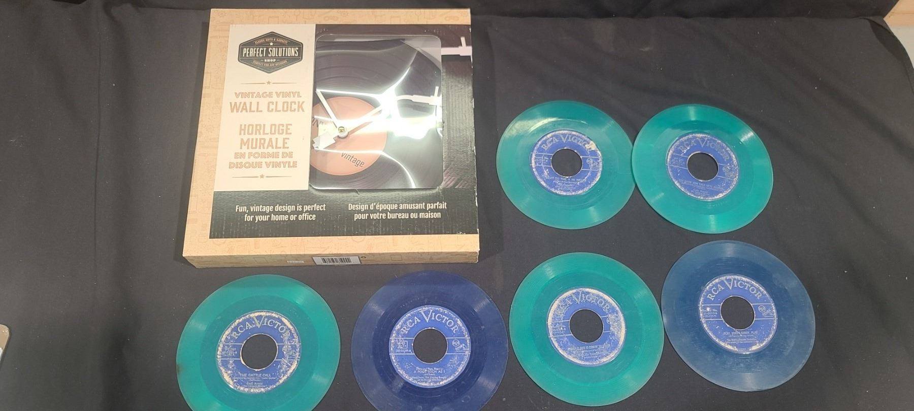 VINTAGE VINYL WALL CLOCK AND 6 RCA RECORDS