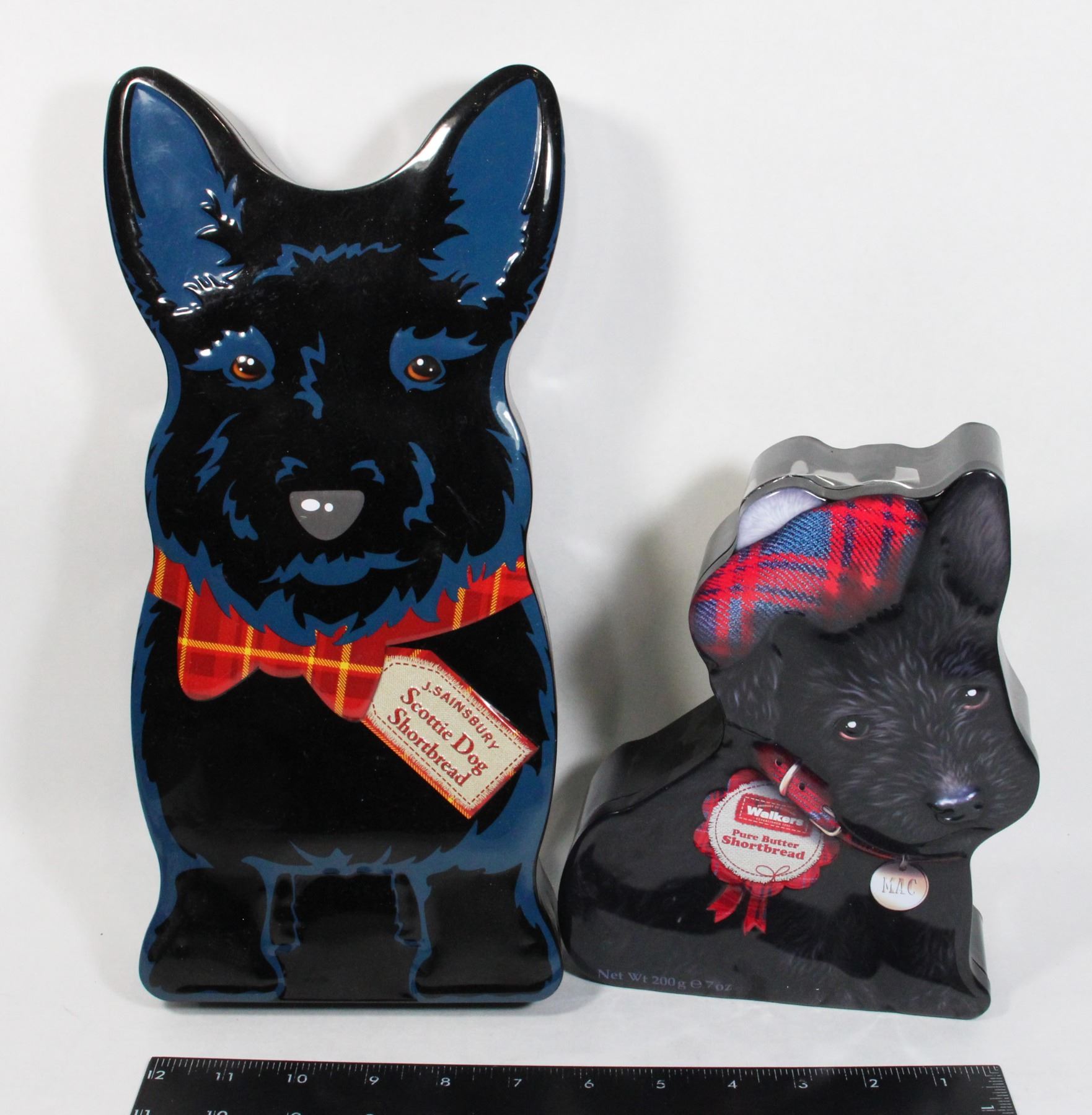 2 VINTAGE WALKERS SHORTBREAD SCOTTIE DOG TINS.