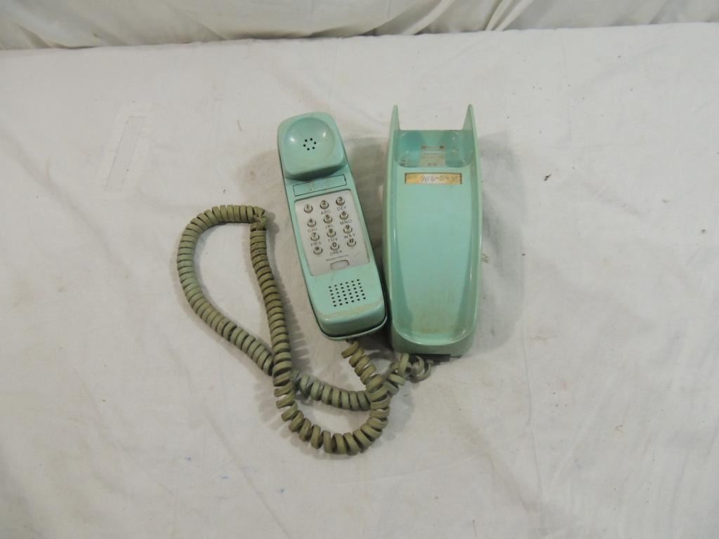 VINTAGE WALL PHONE, MINT COLOR WALL PHONE, VITNAGE CORD PHONE AS SHOWN SEE PHOTO FOR MORE DETAILS.