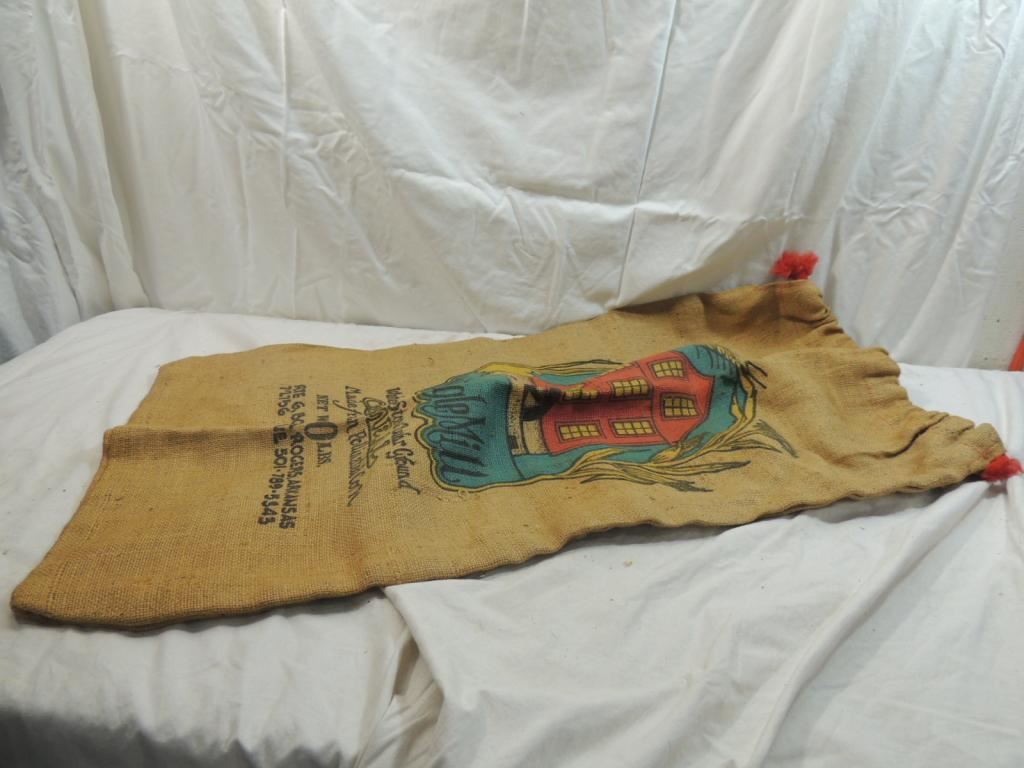 BURLAP SACK, VINTAGE WAR EAGLE MILL CORNMEAL SACK, 50LB SAC, CORNMEAL VINTAGE AS SHOWN SEE PHOTO FOR MORE DETAILS