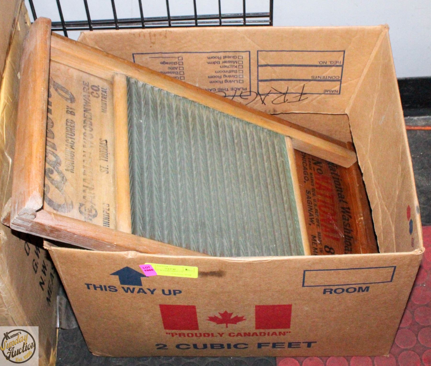 TWO VINTAGE WASHBOARDS. NATIONAL WASHBOARD AND CANADIAN WOODWARE. **ALL ITEMS MUST BE REMOVED BY 5PM SATURDAY, JUNE 14TH 2025. ALL REMAINING ITEMS WILL BE SUBJECT TO A $6.00 PER DAY STORAGE CHARGE. ANY ITEMS REMAINING AFTER MONDAY, JUNE 30TH, 2025 WILL BE CONSIDERED FORFEITED. NO REFUNDS WILL BE ISSUED FOR FORFEITED ITEMS. TO SCHEDULE A PICK UP APPOINTMENT CLICK HERE