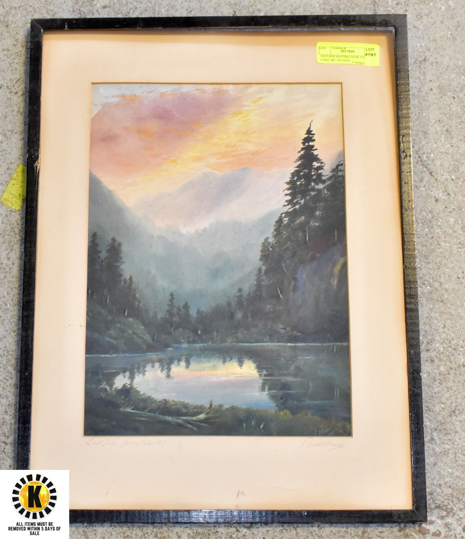 VINTAGE WATERCOLOR "LAST LAKE, BC" SIGNED