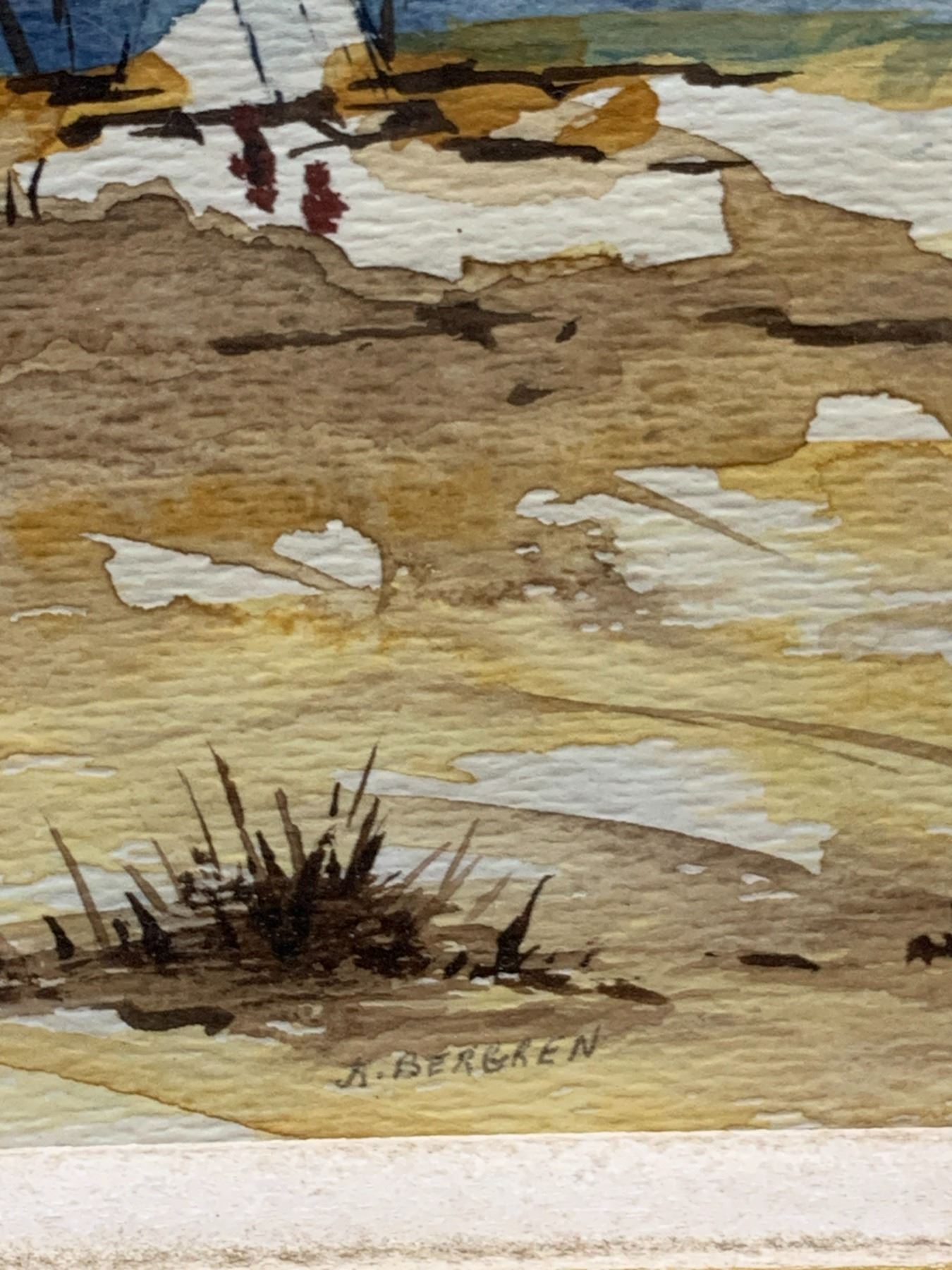 VINTAGE WATERCOLOUR PAINTING GONE FISHING BY KAY BERGREN