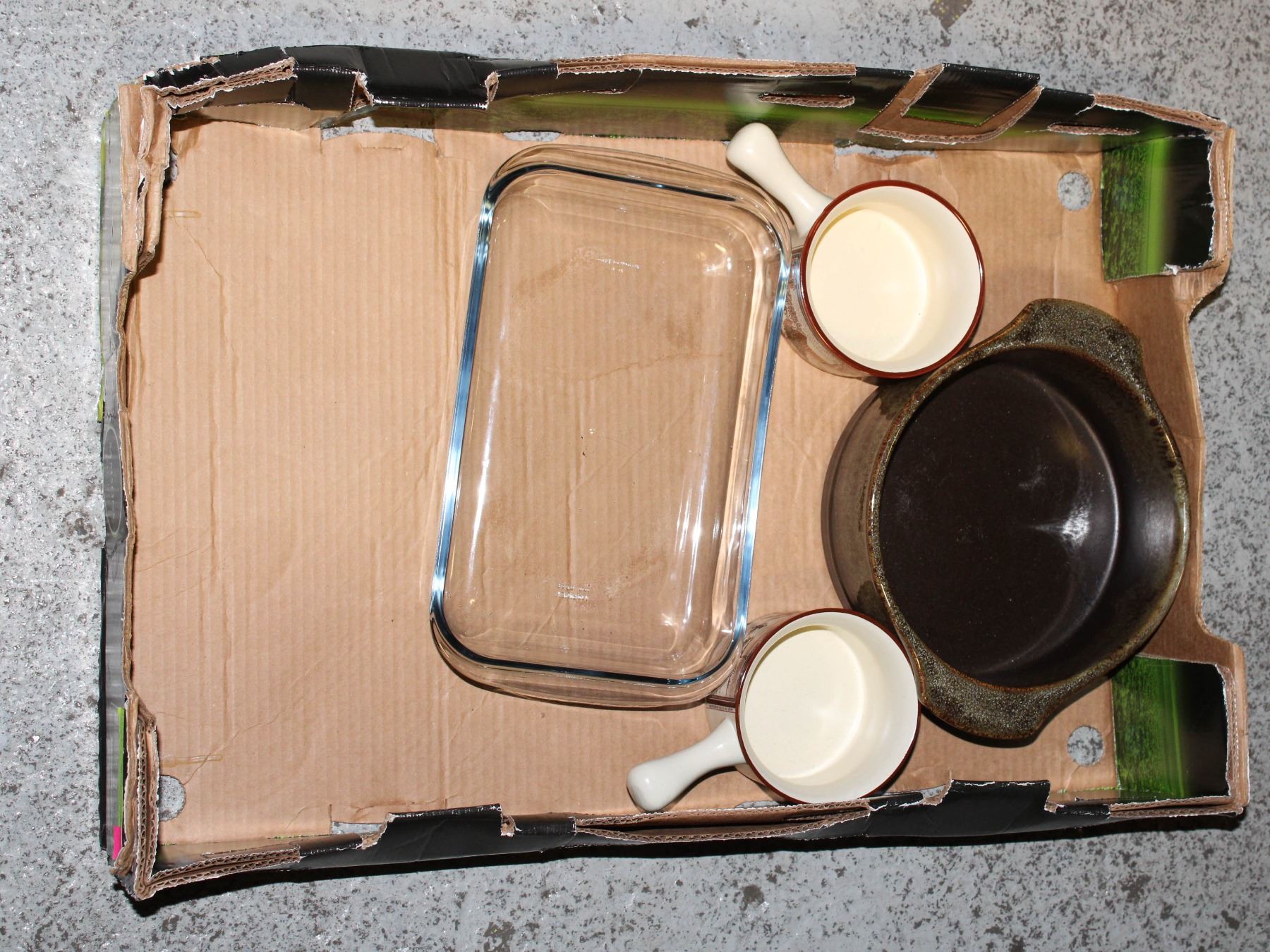 KILNCRAFT POTTERY CASSEROLE, AND PYREX DISH