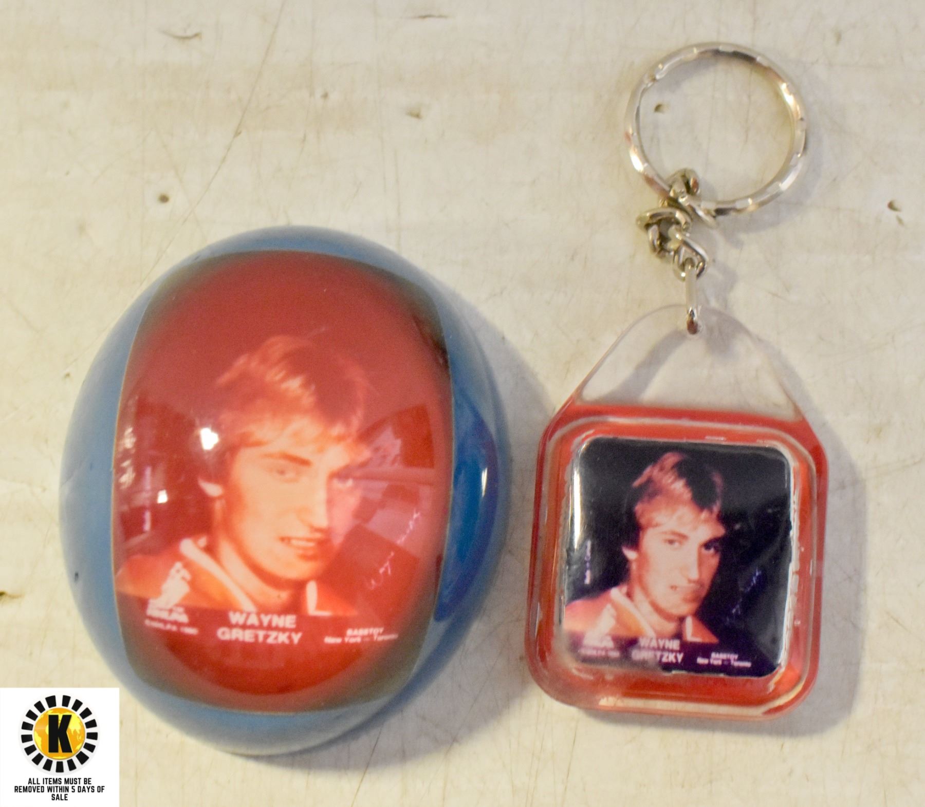 VINTAGE WAYNE GRETZKY KEYCHAIN AND PAPER WEIGHT