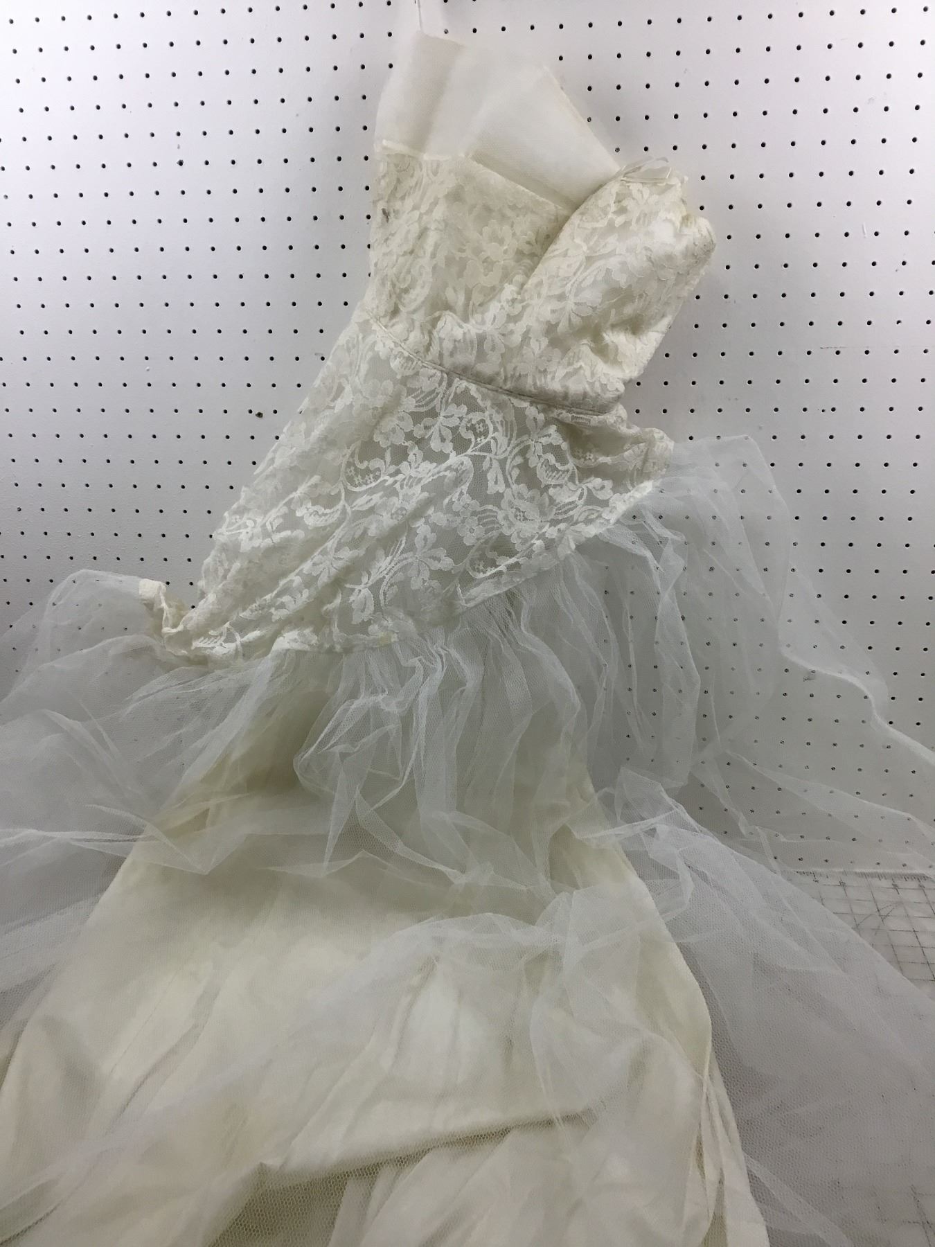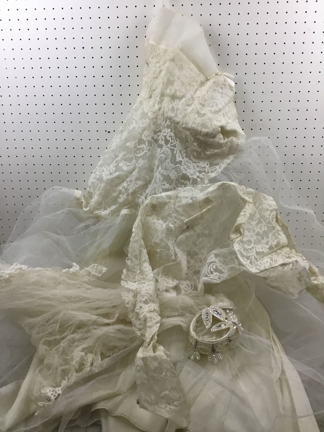 VINTAGE WEDDING DRESS WITH VEIL AND SHAWL