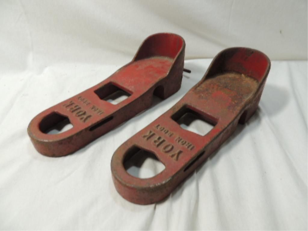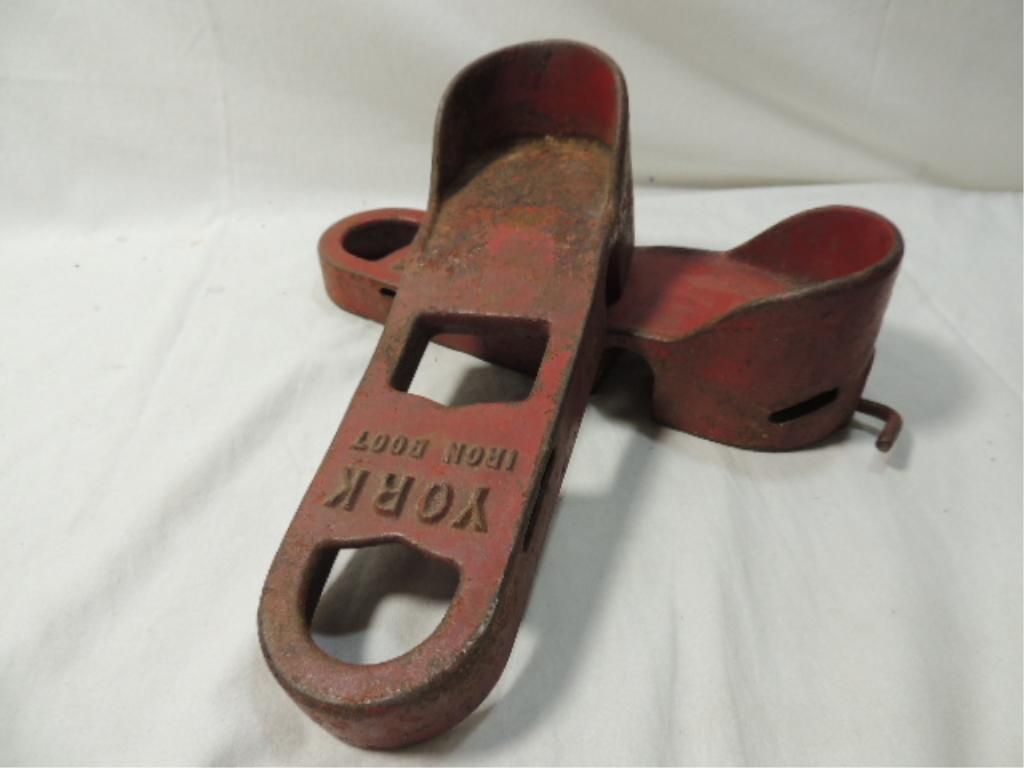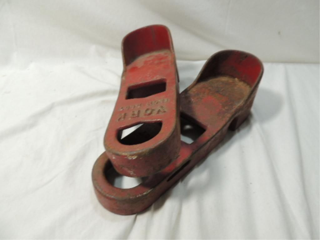 VINTAGE RED YORK HEALTH SHOE & IRON BOOT CAST IRON BOOT SHOE FOOT WEIGHTS PLATES. ANTIQUE BODYBUILDING STRONGMAN HOMEGYM EXERCISE. AS SHOWN SEE PHOTO FOR MORE DETIALS