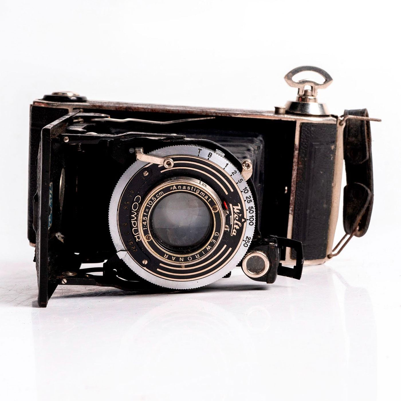 Dating to approx. the 1930's this German made camera "Welrta Compur" 1:4.5 f + 10.5 cm bellows folding camera is in nice condition with a soft non brittle bellows and clear unscratched lens. Cameras and Photographica