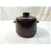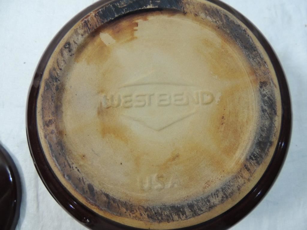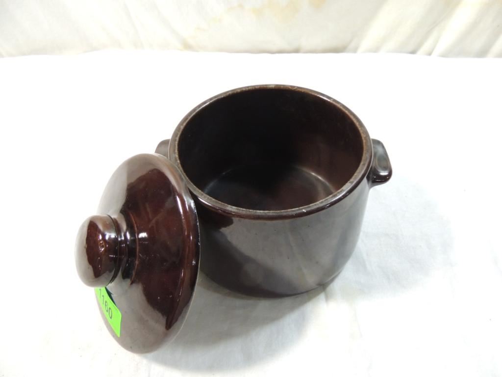 VINTAGE STONEWARE BEAN POT, WEST BEND BROWN GLAZED POTTERY CROCK WITH LID AS SHOWN SEE PHOTO FOR MORE DETAILS.