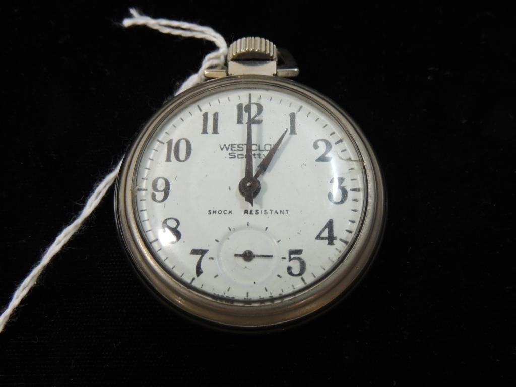VINTAGE WESTCLOX POCKET WATCH. AS SHOWN. SEE PHOTO FOR MORE DETAILS.