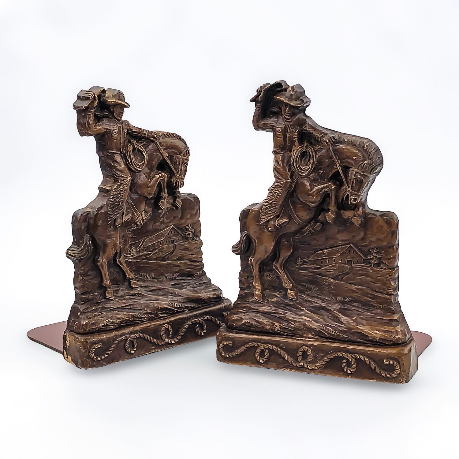 #8392 - PAIR OF OLD WEST COWBOY BOOKENDS. MEASURE: 6.25” (16 CM) TALL, 4.5” (11.5 CM) WIDE, 3.75” (9.5 CM) DEEP