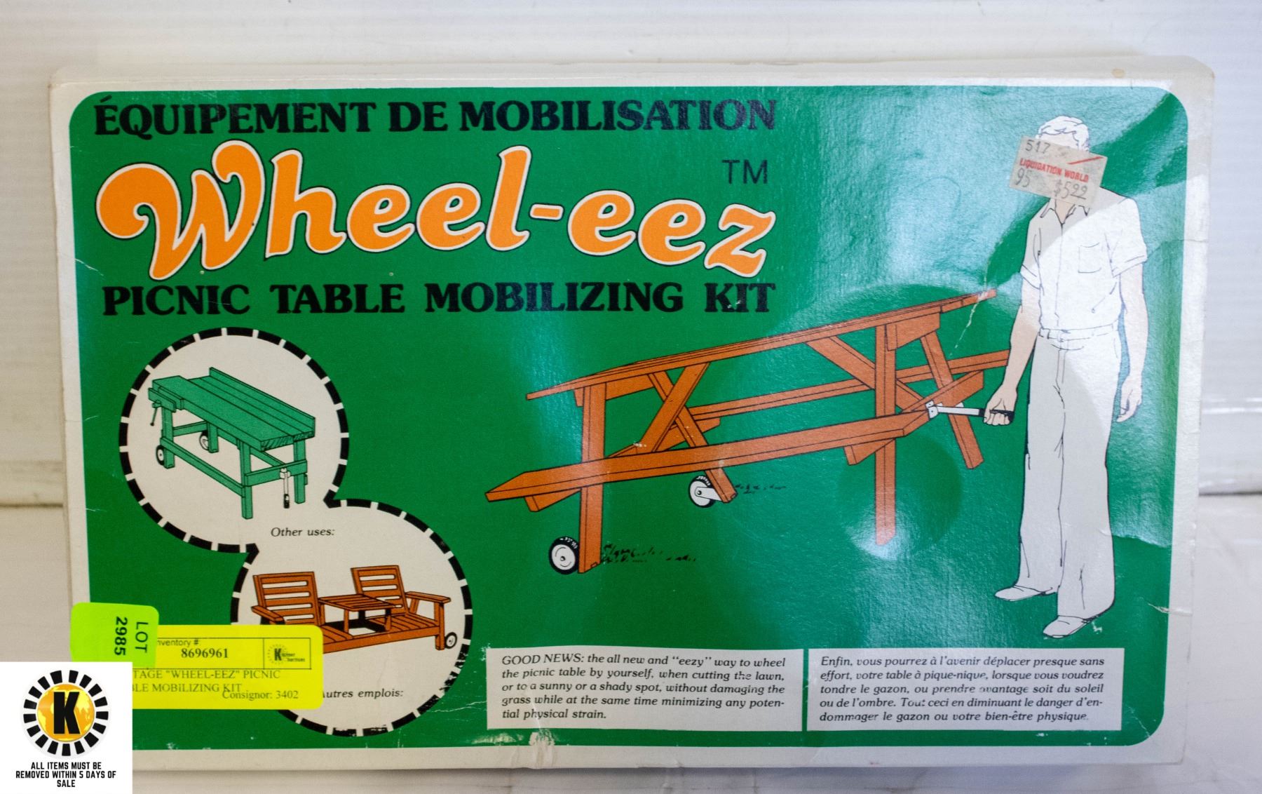 Any lots not removed within the prescribed time shall be subject to storage, moving, disposal and service charges at the sole risk and expense of the purchaser. The purchaser/bidder herby indemnifies the auctioneer and the vendor against any and all damages arising from the dismantling and removal of any lots which have not been picked up in the prescribed time.