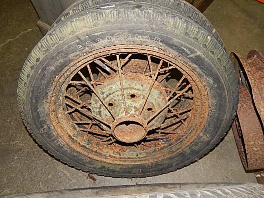 VINTAGE WHEEL - METAL SPOKES AND RUBBER TIRE