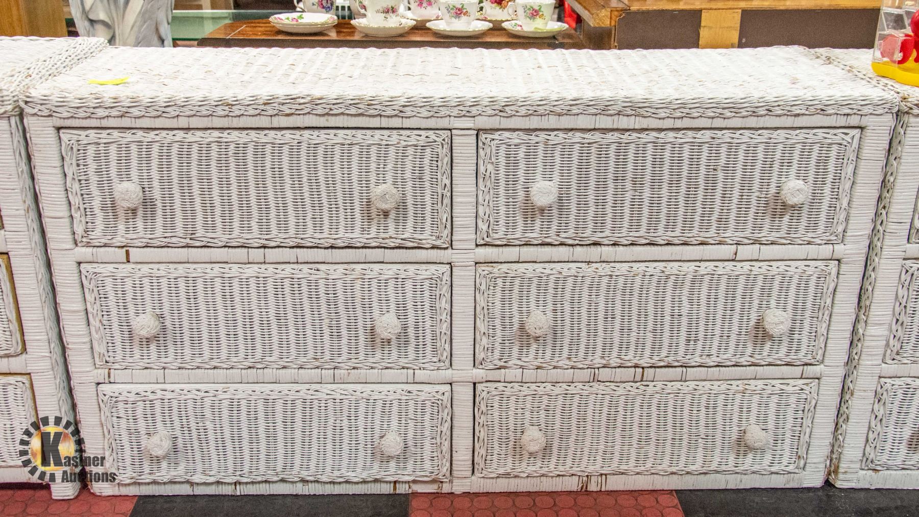 VINTAGE WHITE WICKER DRESSER-ESTATE