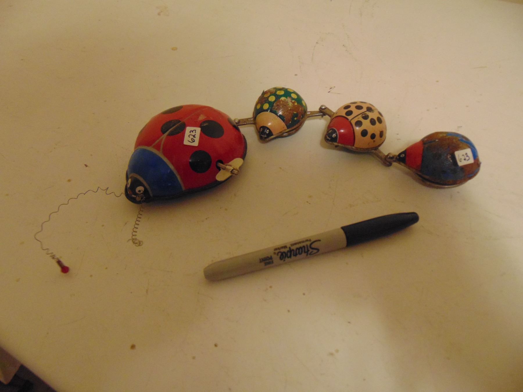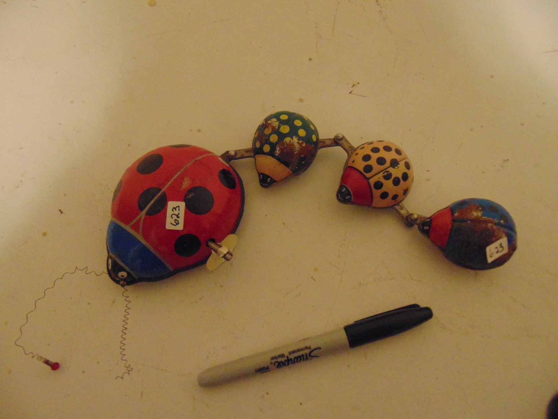 VINTAGE WIND UP LADY BUGS TIN TOY