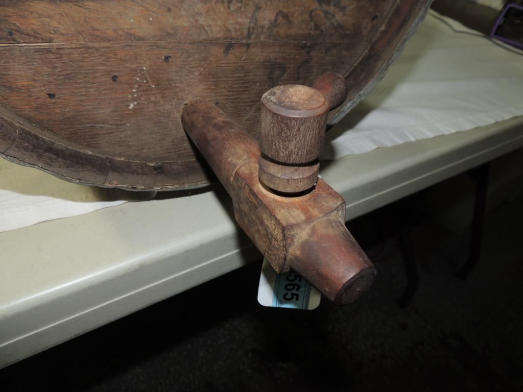 VINTAGE BARREL WINE BARREL. BARREL TAP. WINE BARREL SPIGOT WOODEN BARREL. AS SHOWN. SEE PHOTO FOR MORE DETAILS.