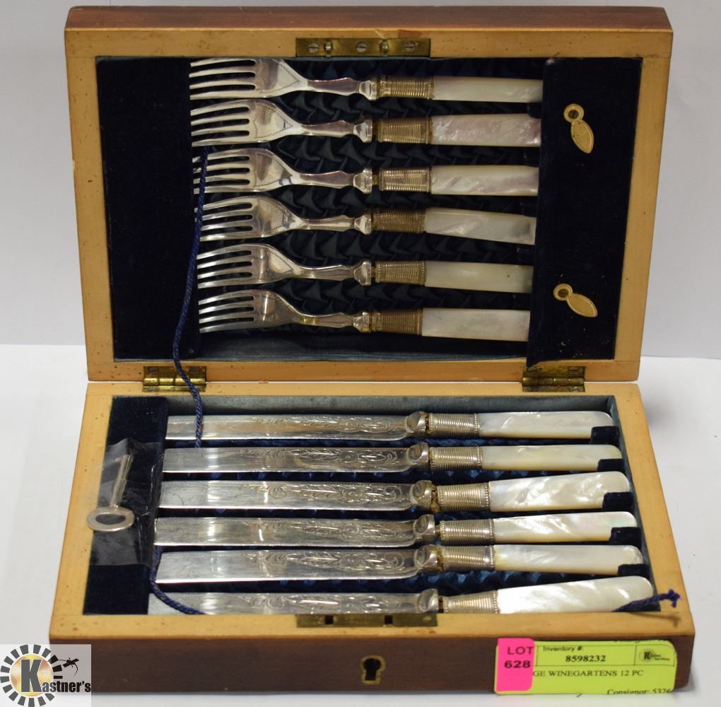12 PC SILVER PLATED FISH CUTLERY IN ORIGINAL LOCKING BOX WITH KEY SILVER PLATED EPNS A1
