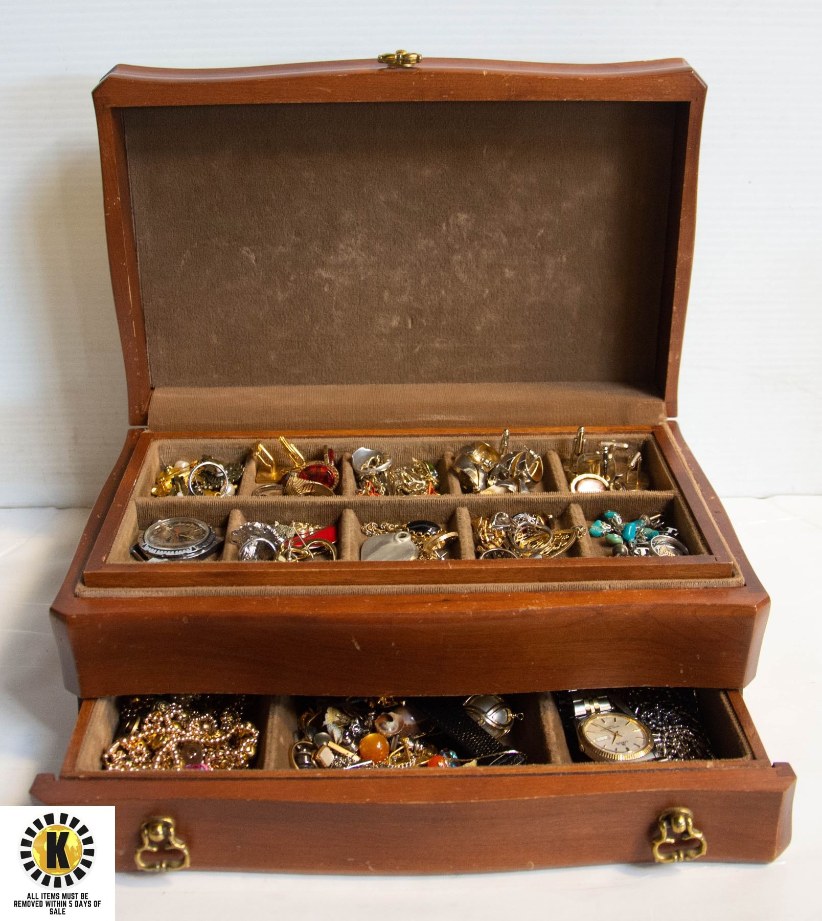 VINTAGE WOOD 3 TIER JEWELLERY BOX- FULL