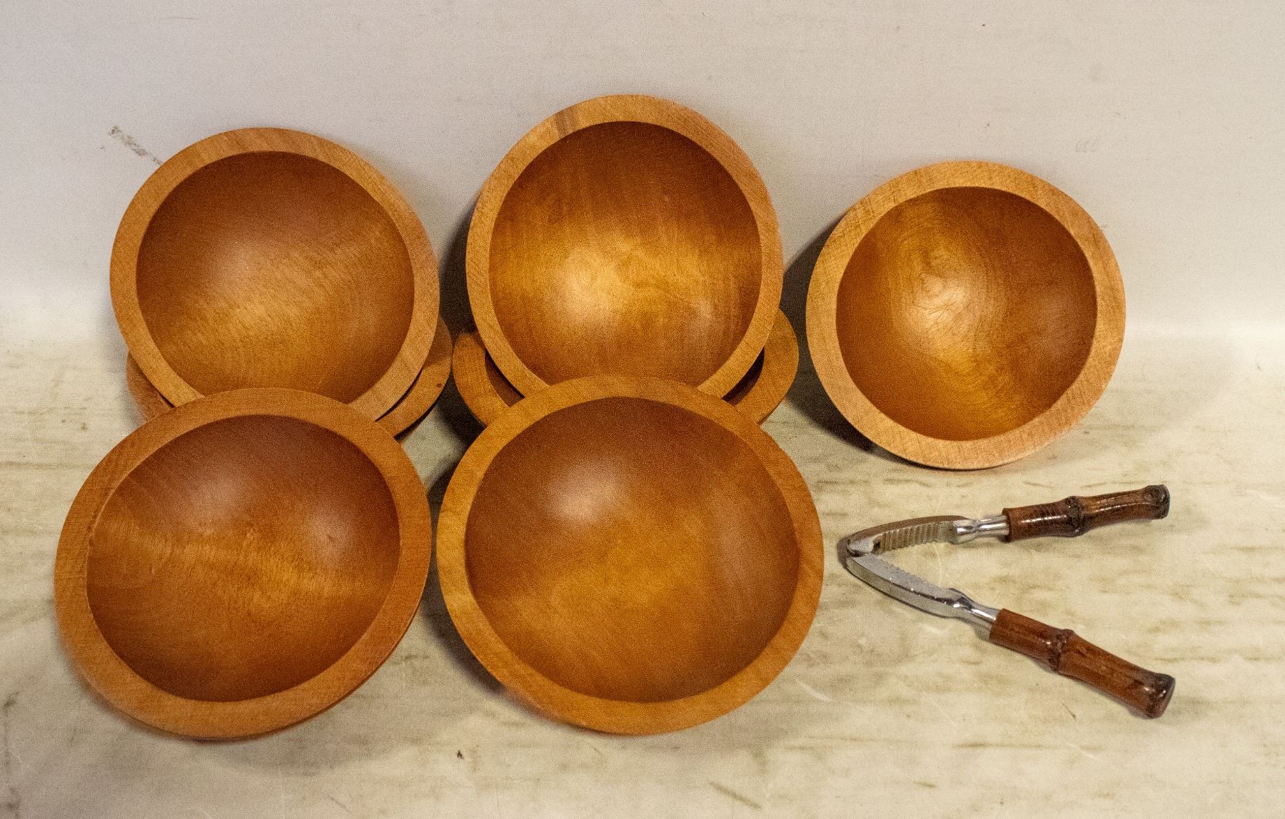 VINTAGE WOOD BOWLS WITH NUTCRACKER AND PICKS