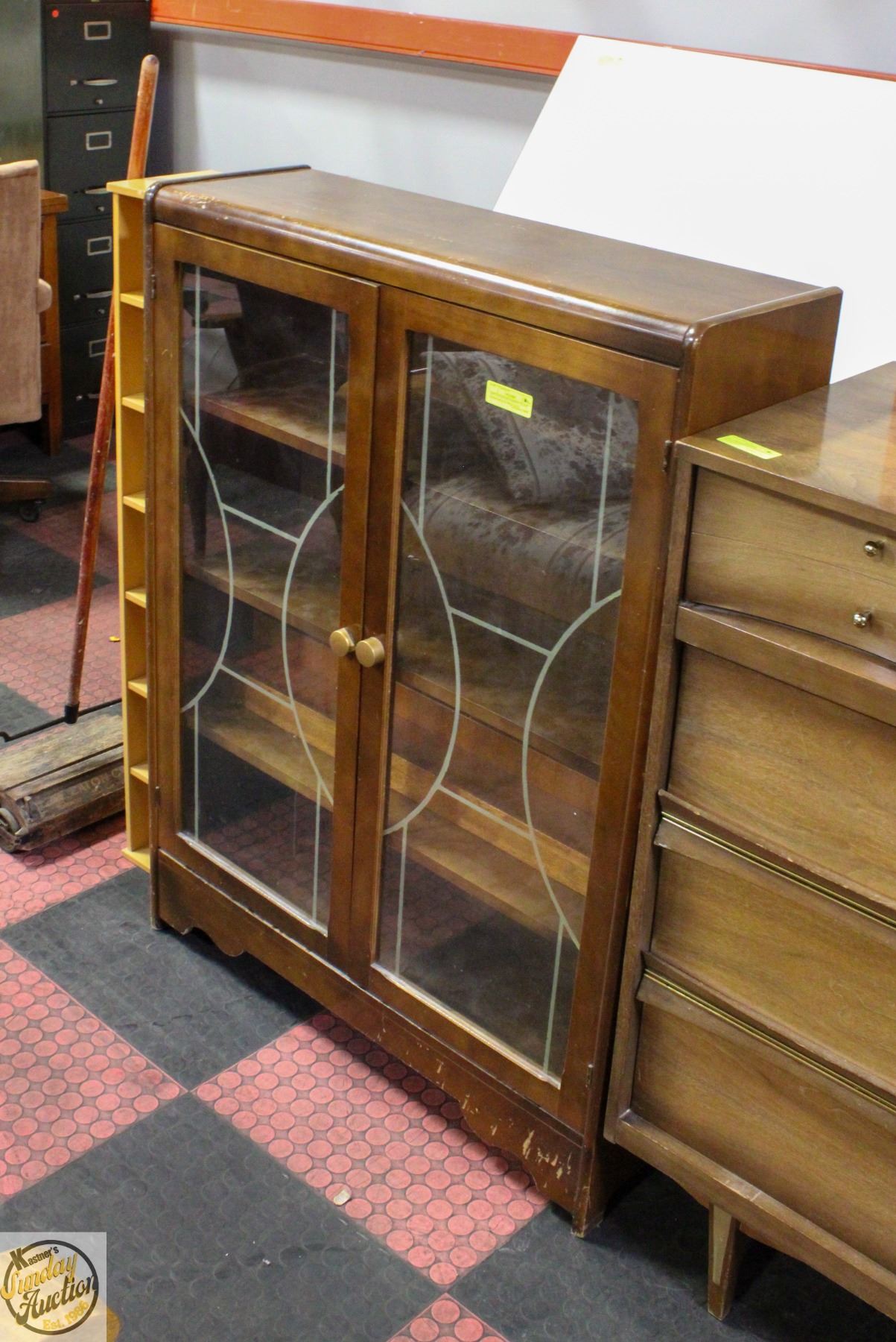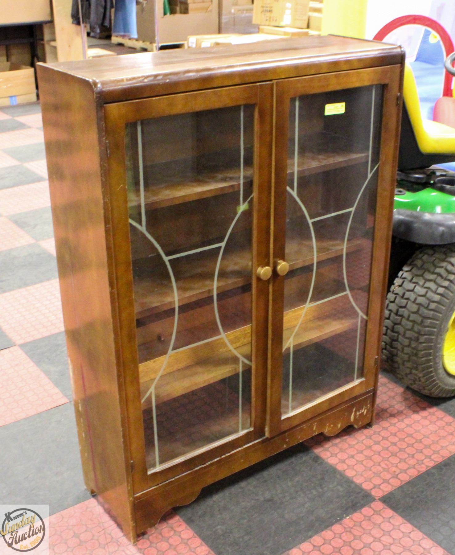 VINTAGE WOOD CABINET GLASS DOORS MULTI SHELF