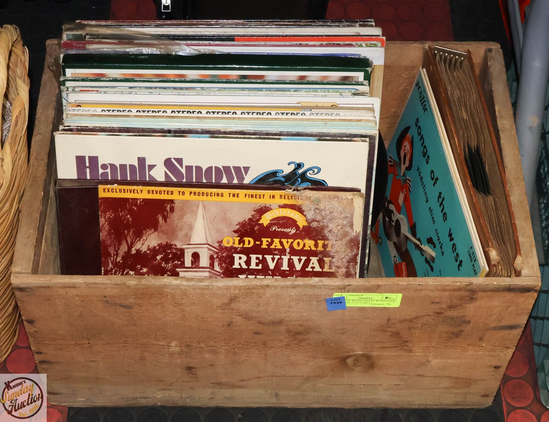 VINTAGE WOOD CRATE W/VINTAGE RECORDS, COUNTRY +