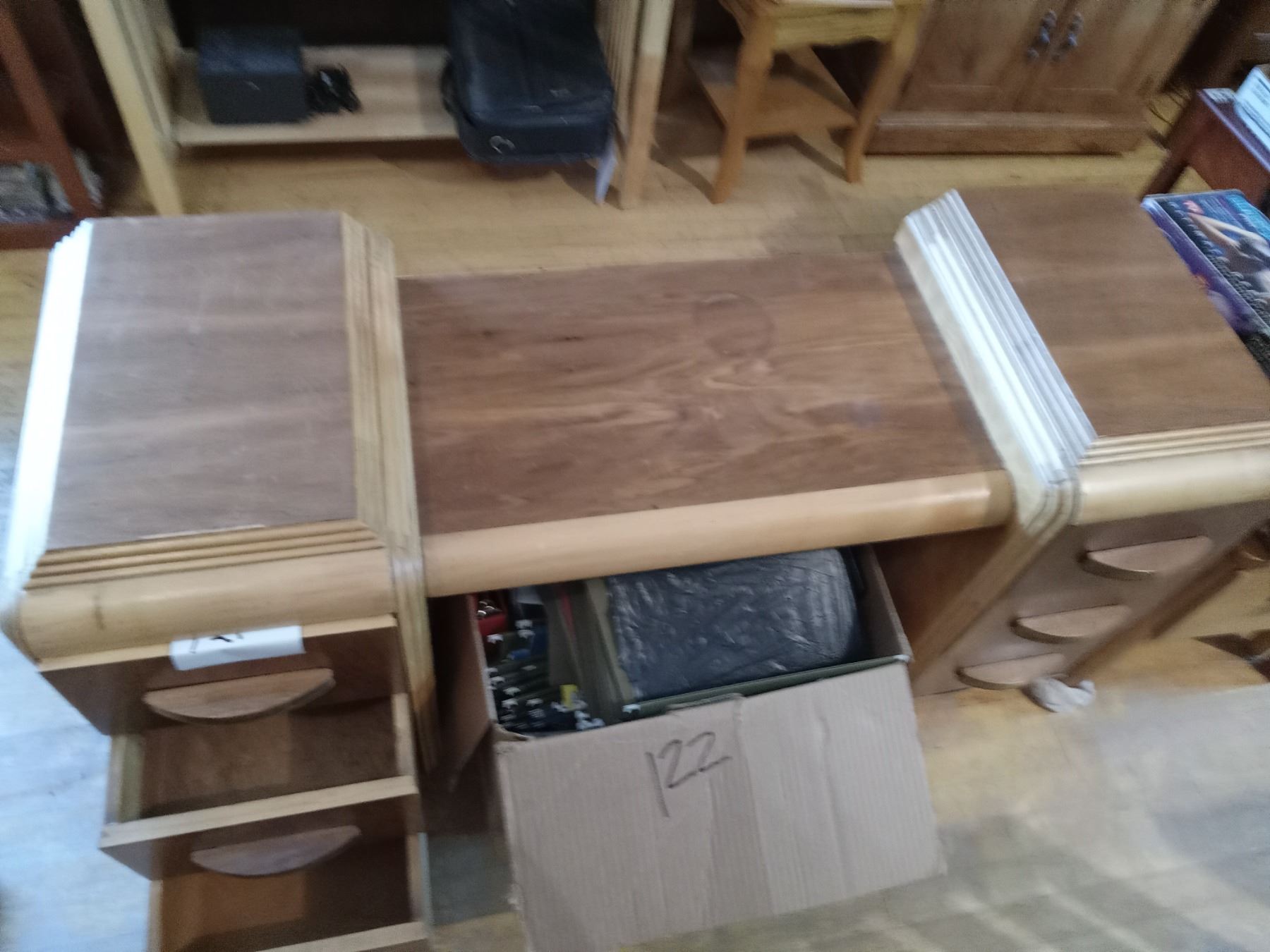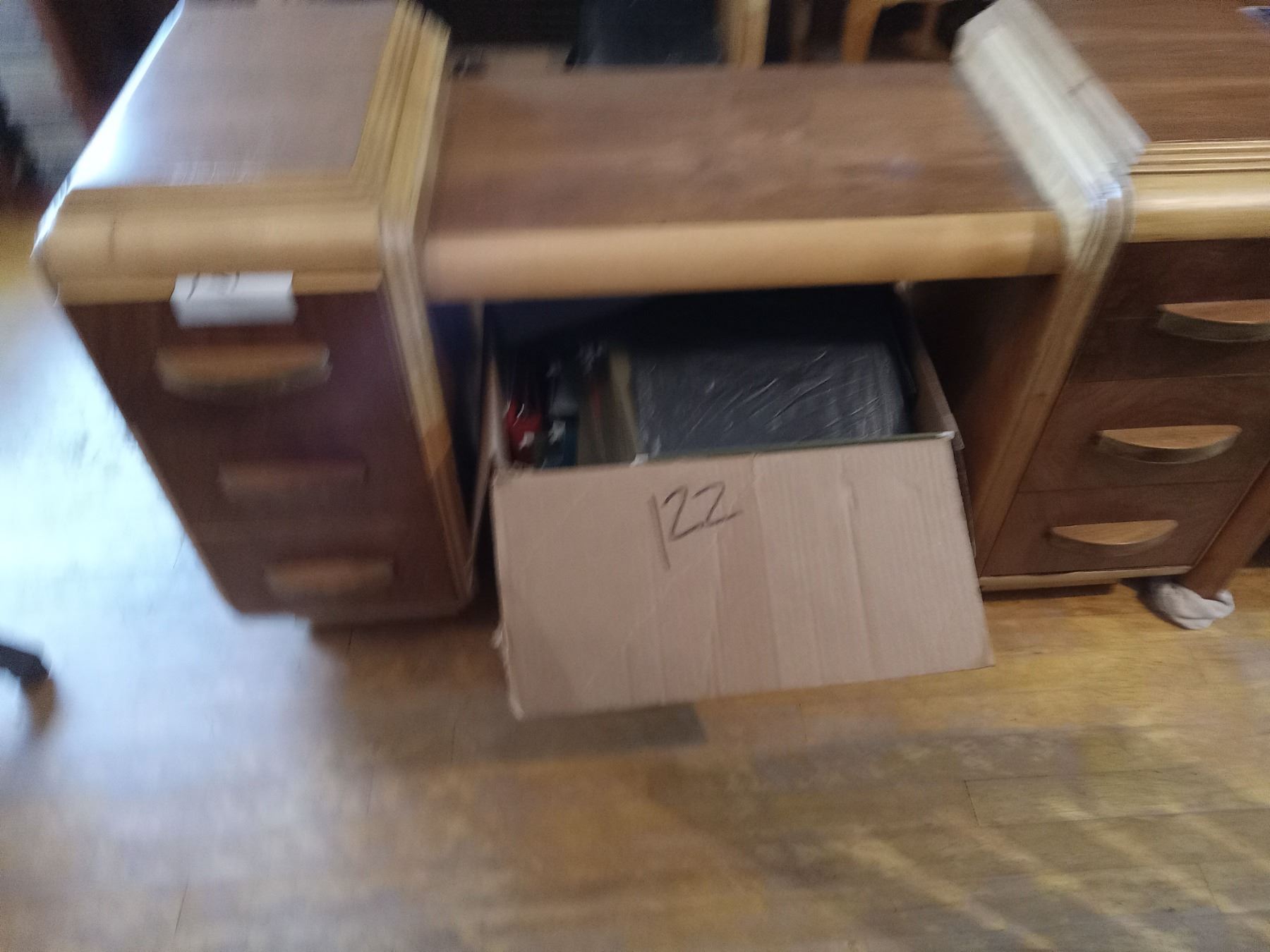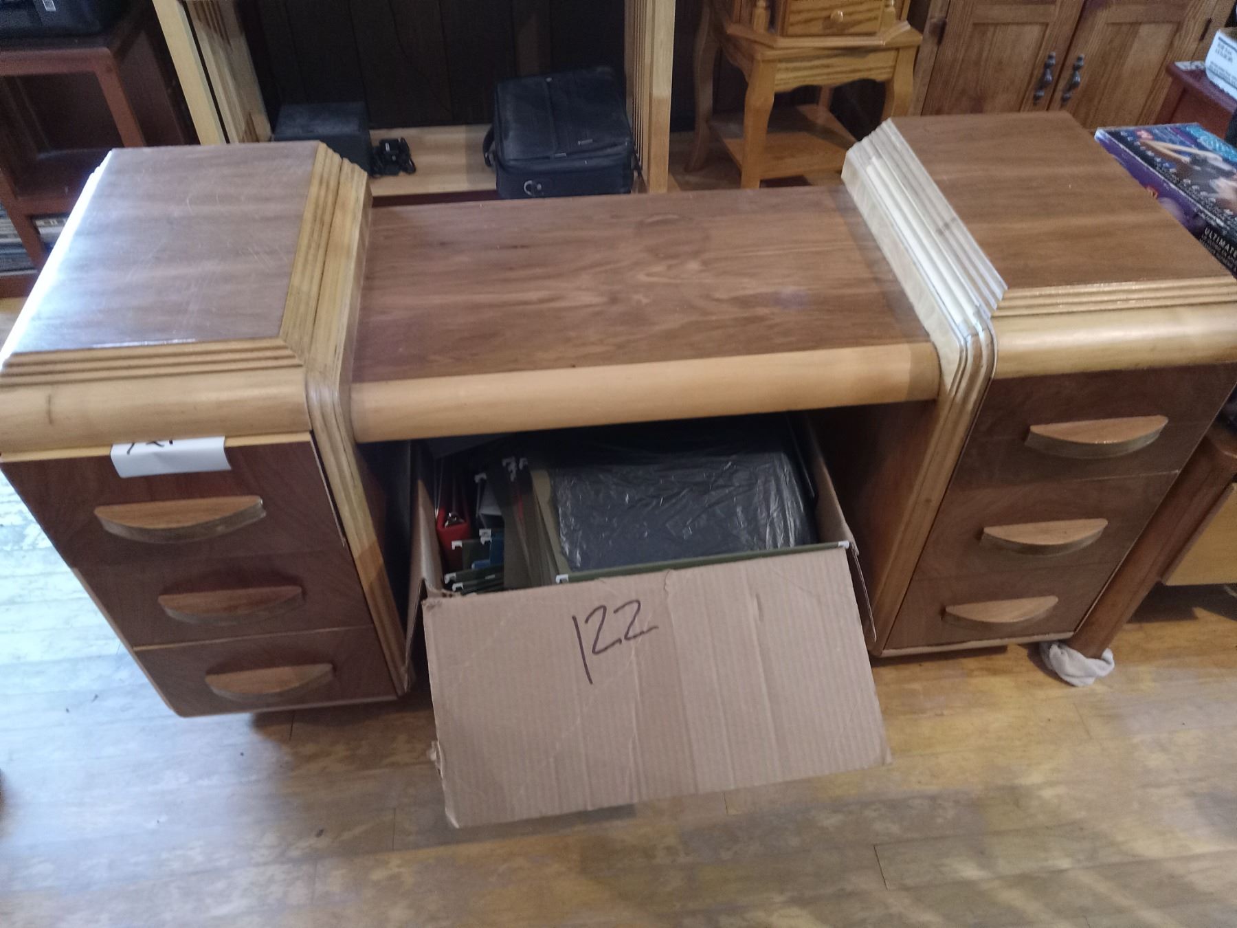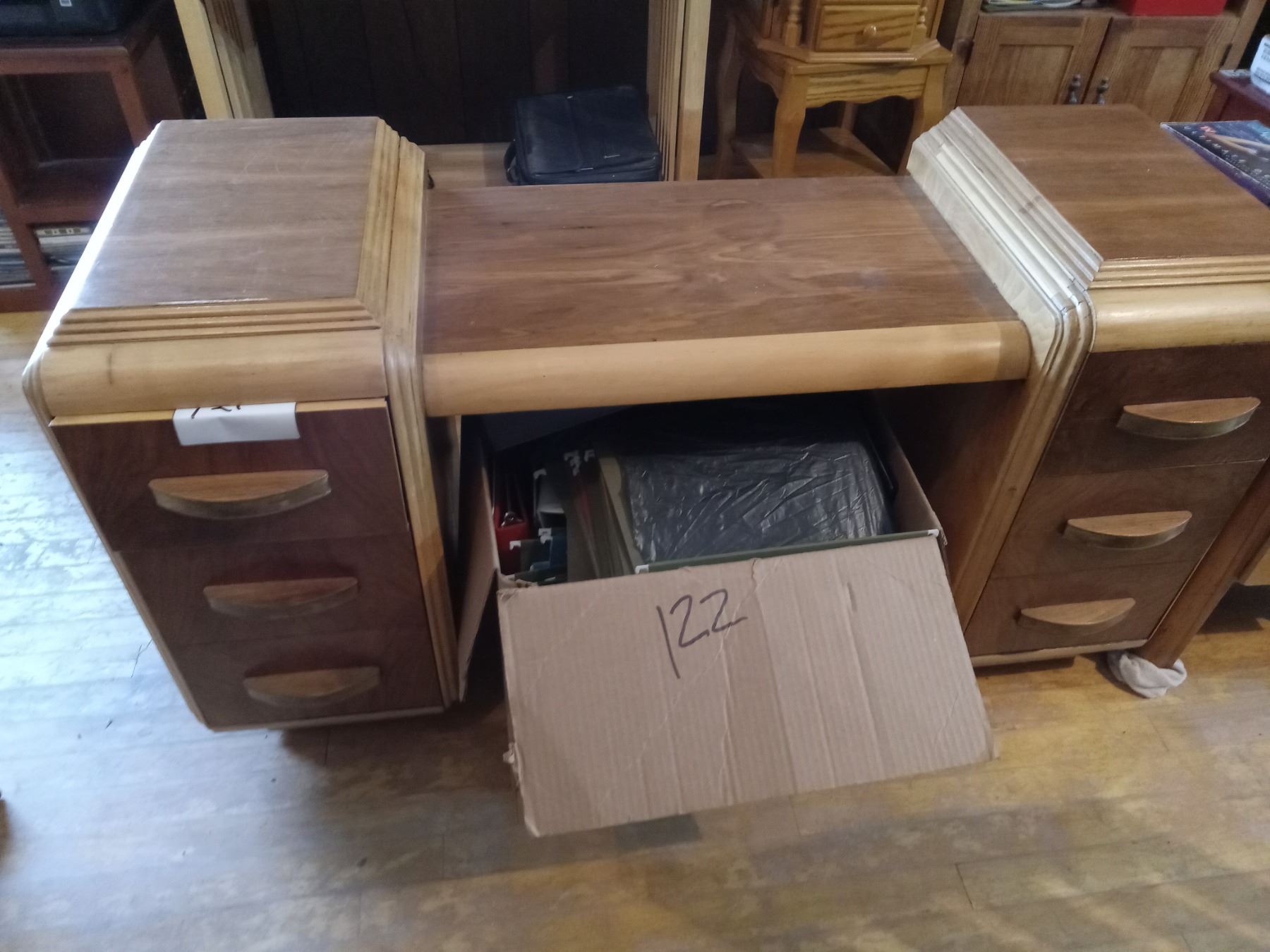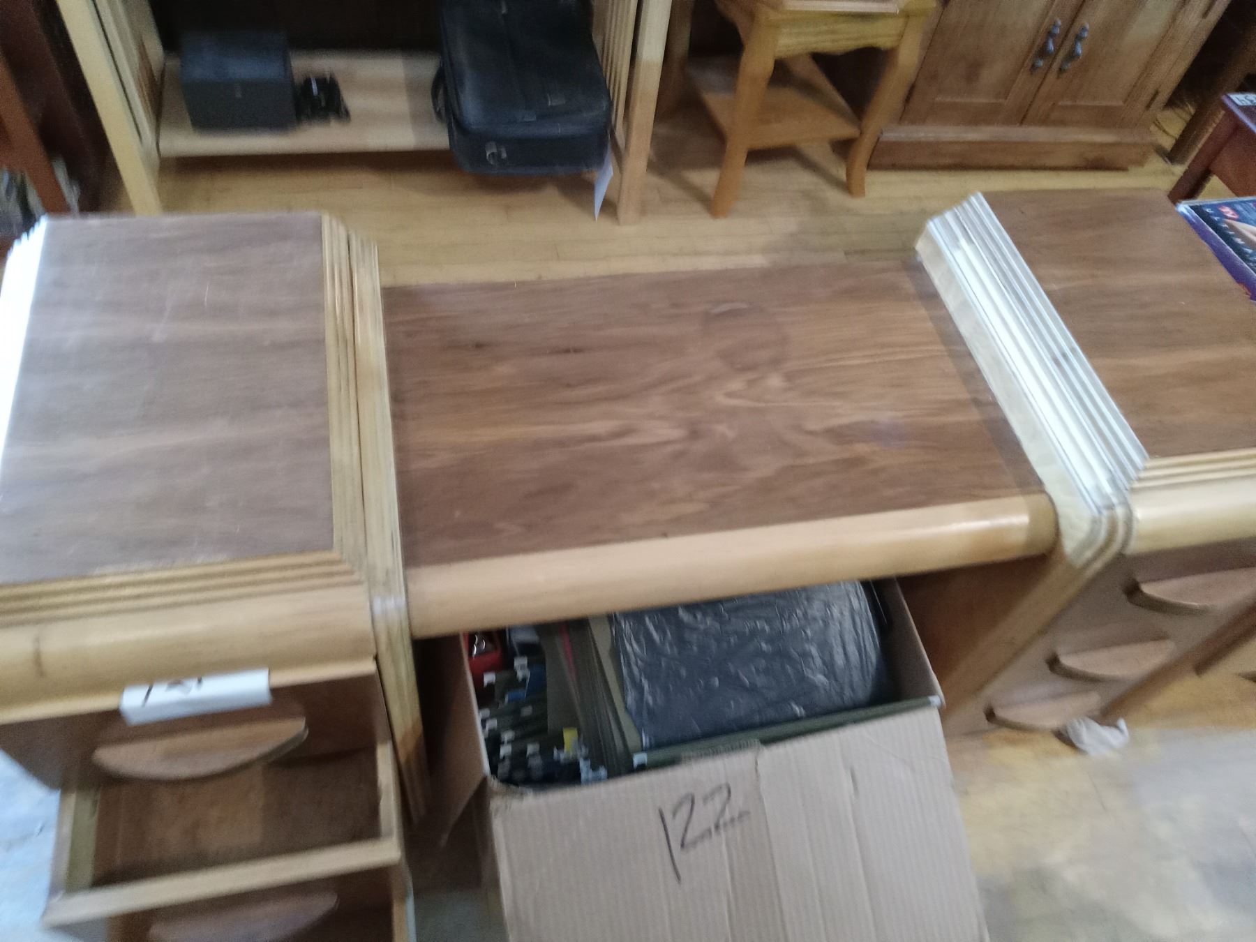 VINTAGE WOOD DESK C/W 6 DRAWERS