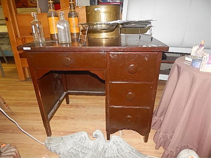 VINTAGE WOOD DESK - PAINTED BROWN