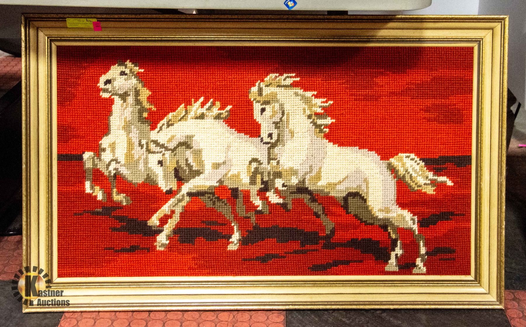 HORSES"-WALL ART (42"L X 26"H) **ALL ITEMS MUST BE REMOVED BY 5PM SATURDAY, MAY 20TH 2023. ALL REMAINING ITEMS WILL BE SUBJECT TO A $6.00 PER DAY STORAGE CHARGE. ANY ITEMS REMAINING AFTER MONDAY, JUNE 5TH, 2023 WILL BE CONSIDERED FORFEITED. NO REFUNDS WILL BE ISSUED FOR FORFEITED ITEMS. TO SCHEDULE A PICK UP APPOINTMENT CLICK HERE