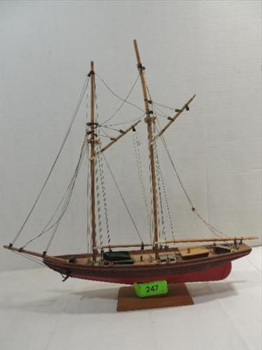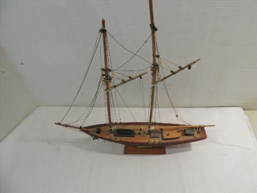 VINTAGE WOOD HAND CRAFTED MODEL 2 MAST SCOONER. 18.5"L. AS SHOWN. VIEW PICTURE FOR DETAIL.