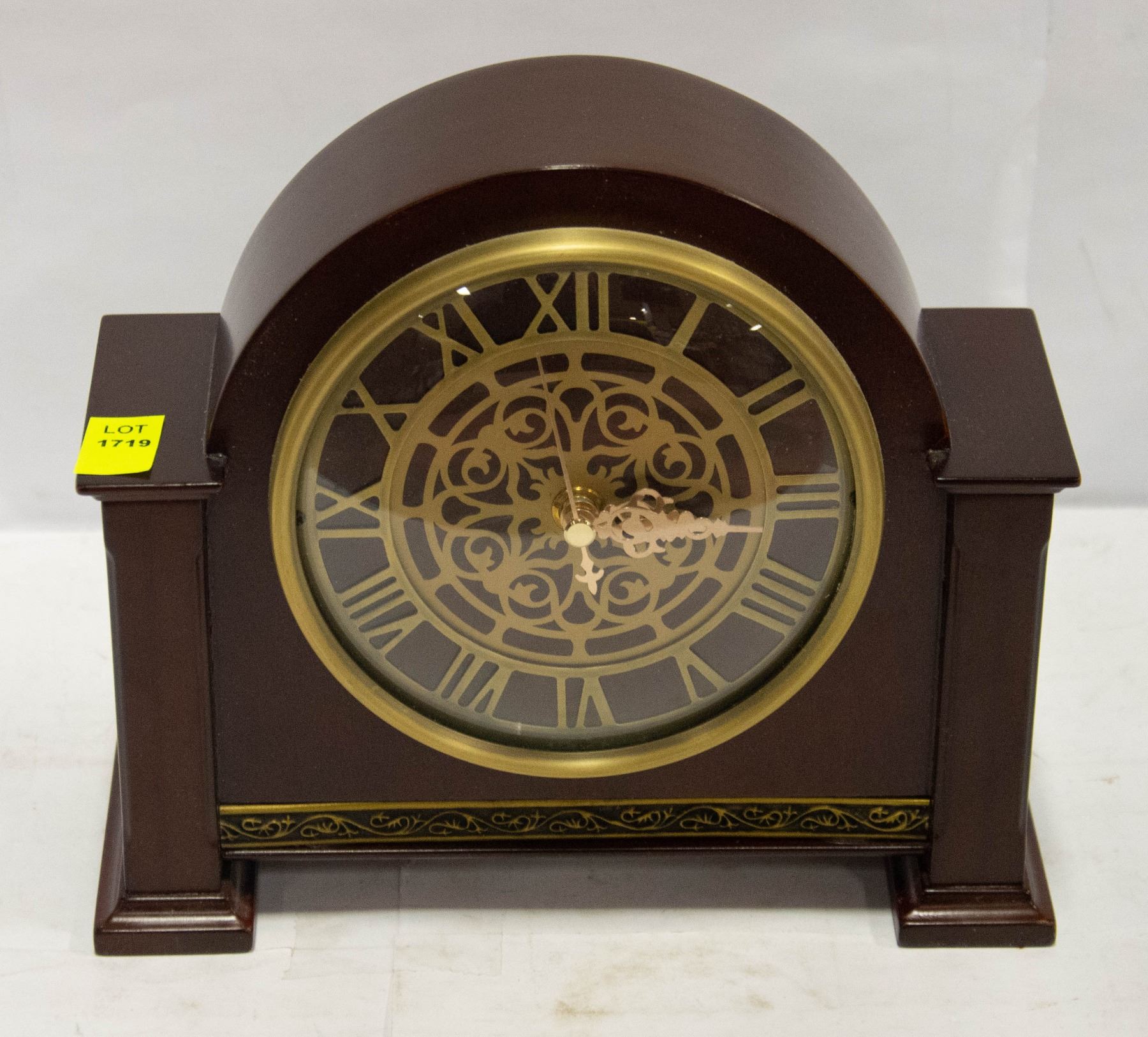 VINTAGE WOOD MANTLE CLOCK APPROX 6" TALL
