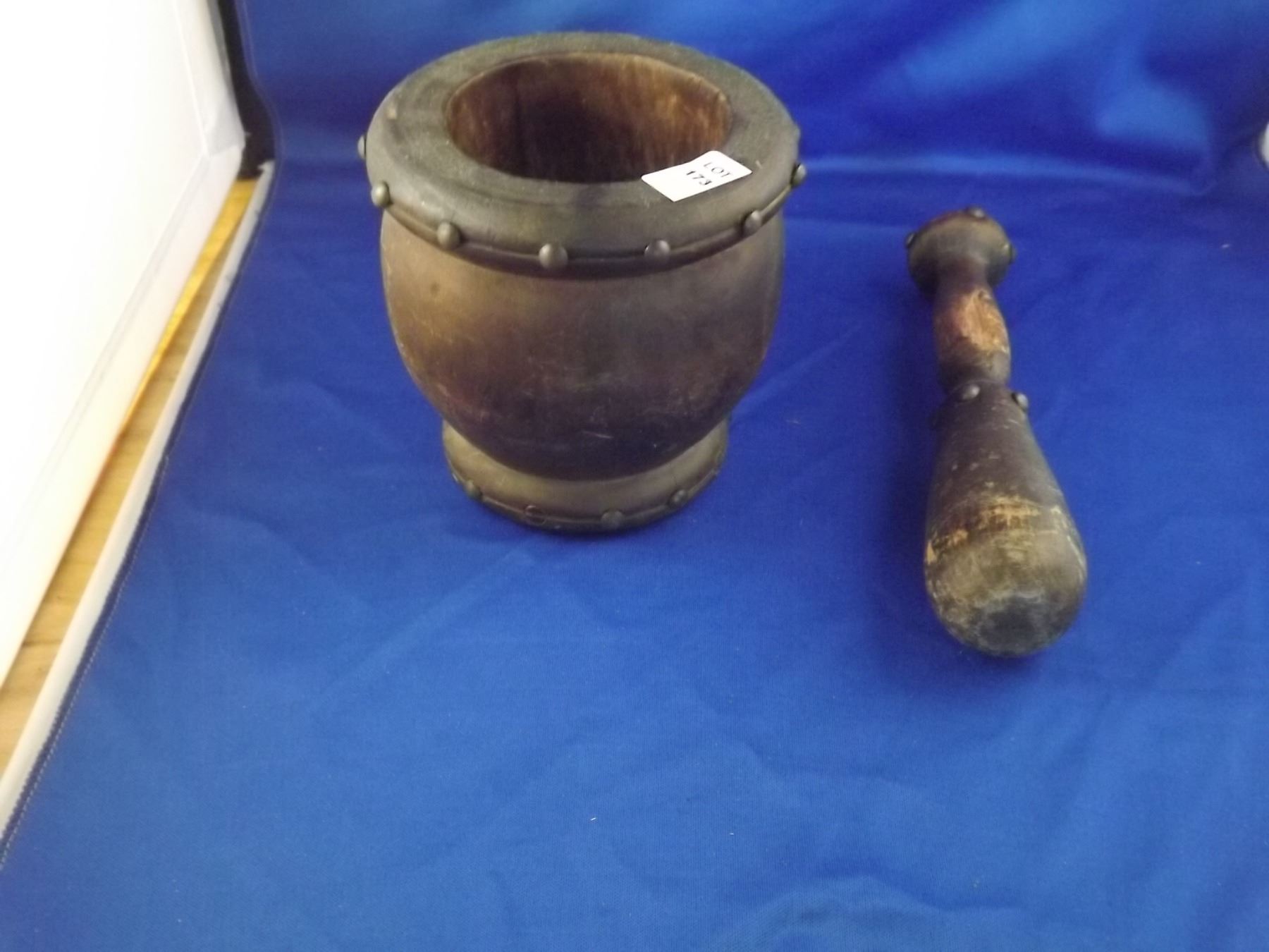 VINTAGE WOOD & STUDDED APOTHECARY MORTAR & PESTLE