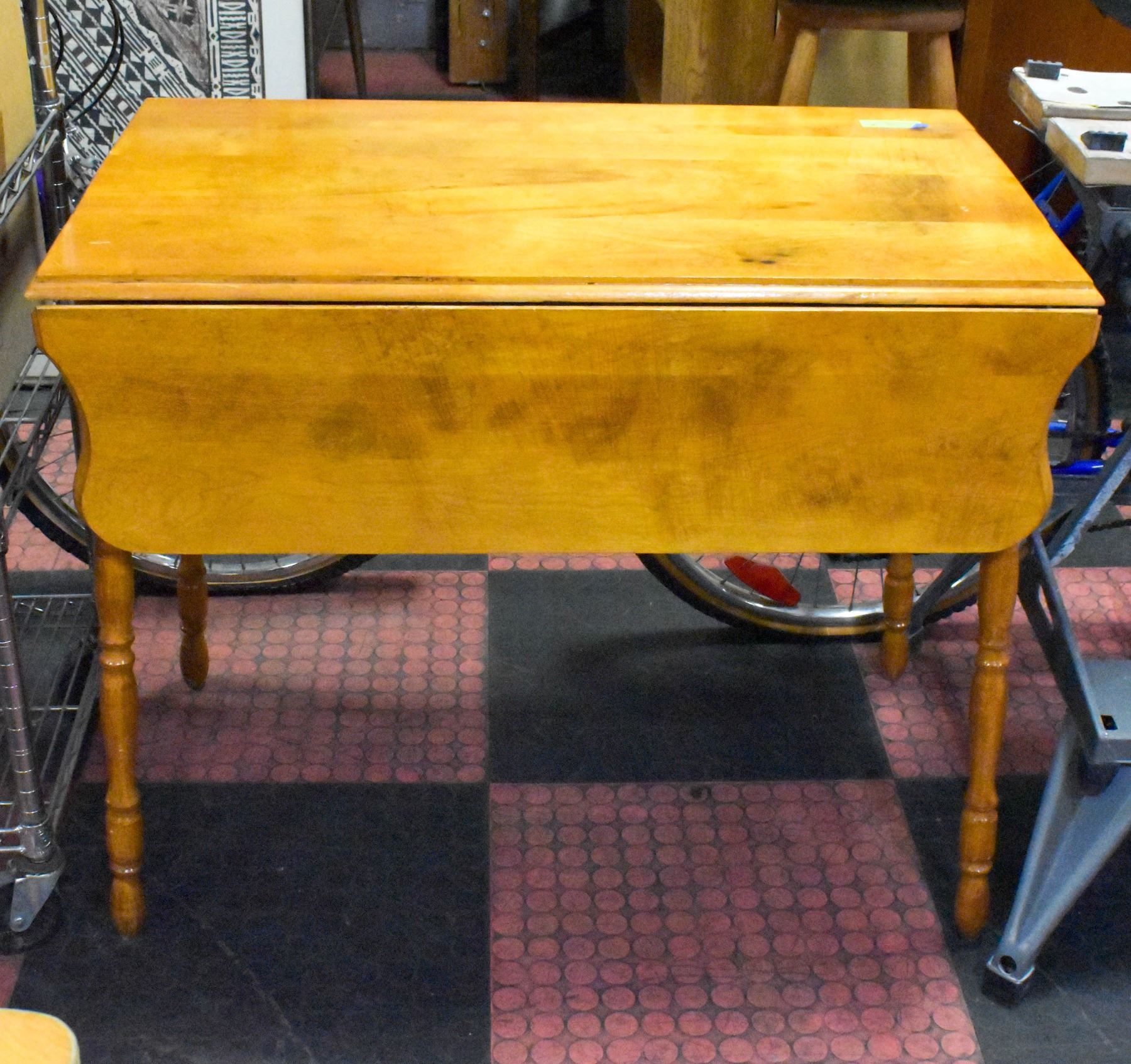 VINTAGE WOOD TABLE WITH FOLDING SIDES 36"X30"