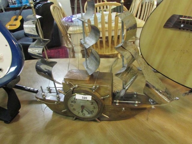 VINTAGE WOOD & TIN SHIP CLOCK - SESSIONS