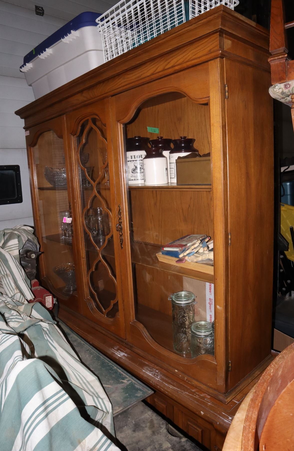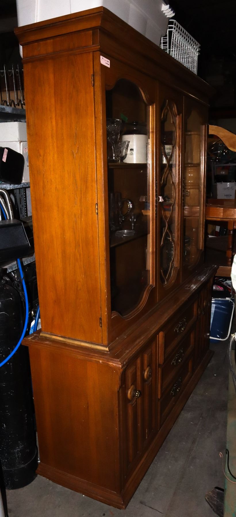 CHINA CABINET/ BUFFET WITH HUTCH. REAL WOOD. APPROX 79" TALL X 64" X 19". A FEW SCRATCHES, OVERALL VERY GOOD CONDITION.
